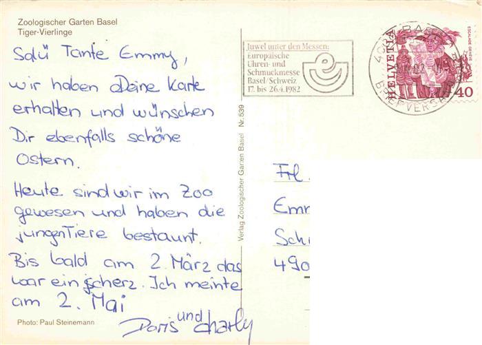 74030180 alte Postkarte Tiger Tigre– Vierlinge Zoologischer Garten Basel postalisch gelaufen Erhaltung siehe scans [SanaeD93] KatCode: 22540000000000