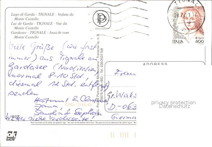 old postcard Tignale Lago di Garda Veduta da Monte Castello postalisch gelaufen Erhaltung siehe scans