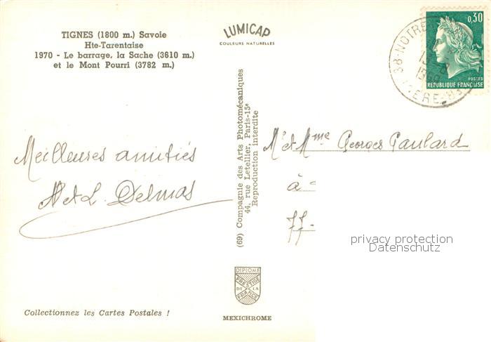 13767507 Tignes 73 Le barrage la Sache et le Mont Pourri postalisch gelaufen Erhaltung siehe scans [WerneD78] carte postale Wern Katcode 11170073173296