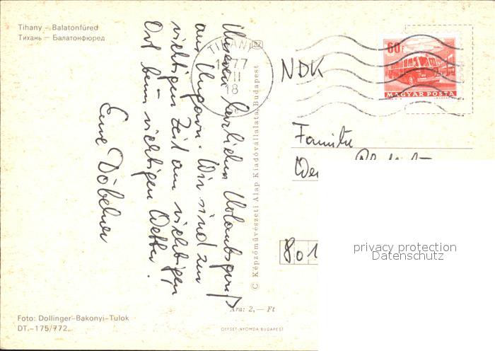 old postcard Tihany Balatonfuered Kirche Hotel Seglerhafen Plattensee postalisch gelaufen Erhaltung siehe scans