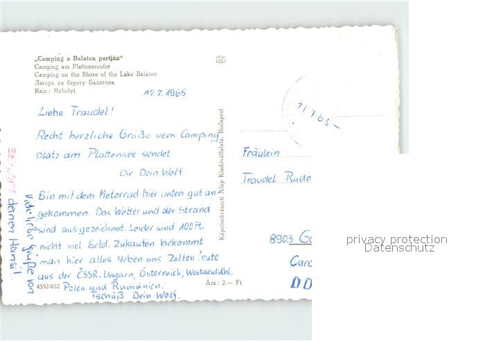 old postcard Tihany Camping Balaton partjan Fuered Akarattya Almadi postalisch gelaufen Erhaltung siehe scans