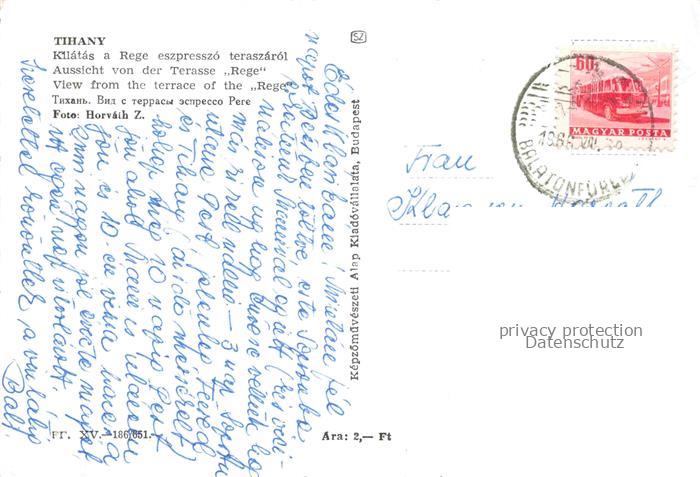 74047835 old postcard Tihany HU Blick von der Terrasse Rege postalisch gelaufen Erhaltung siehe scans [WerneD78] KatCode: 11550