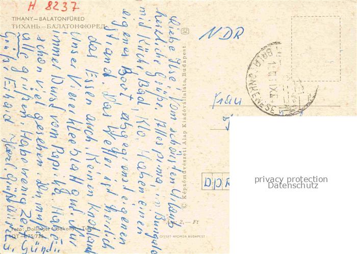 74006214 old postcard Tihany HU Blick zum Kloster Balatonfuered Hotel Hafen Plattensee postalisch gelaufen Erhaltung siehe scans [FriedD77] KatCode: 11550