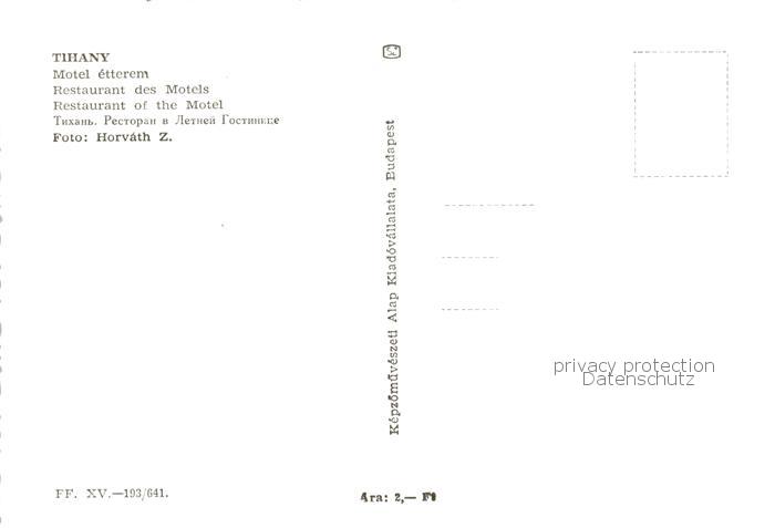 Tihany HU Motel etterem postalisch nicht gelaufen Erhaltung siehe scans [WerneD78]