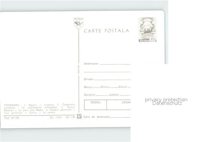 Timisoara Opera Catedrale orthodoxe Parc des Roses Vue generale Centre postalisch nicht gelaufen Erhaltung siehe scans