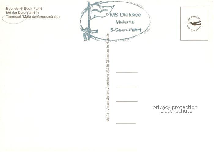 73789535 Timmdorf Malente Boot der 5 Seen Fahrt bei Durchfahrt in Timmdorf postalisch nicht gelaufen Erhaltung siehe scans [WerneD78] KatCode: 11110001055028