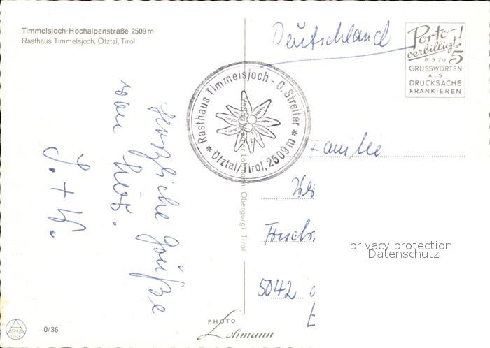 72438129 alte Postkarte Timmelsjoch Hochalpenstrasse Rasthaus postalisch gelaufen Erhaltung siehe scans KatCode: 11390