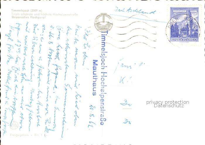 72279500 alte Postkarte Timmelsjoch Hochgurgl postalisch gelaufen Erhaltung siehe scans KatCode: 11390
