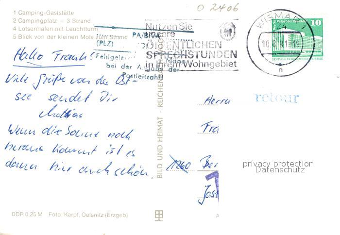 72942709 alte Postkarte Timmendorf Insel Poel Camping Gaststaette Lotsenhafen Leuchtturm postalisch gelaufen Erhaltung siehe scans [NatalD47] KatCode: 11110013058050