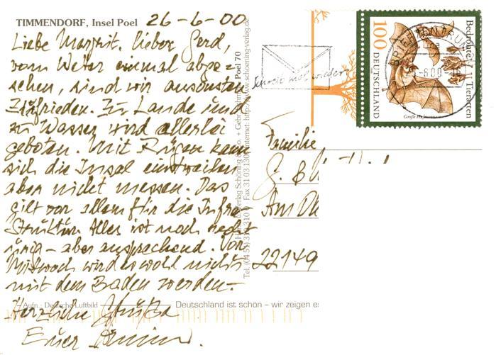 73944065 alte Postkarte Timmendorf Insel Poel Fliegeraufnahme mit Yachthafen postalisch gelaufen Erhaltung siehe scans [WerneD78] KatCode: 11110013058050