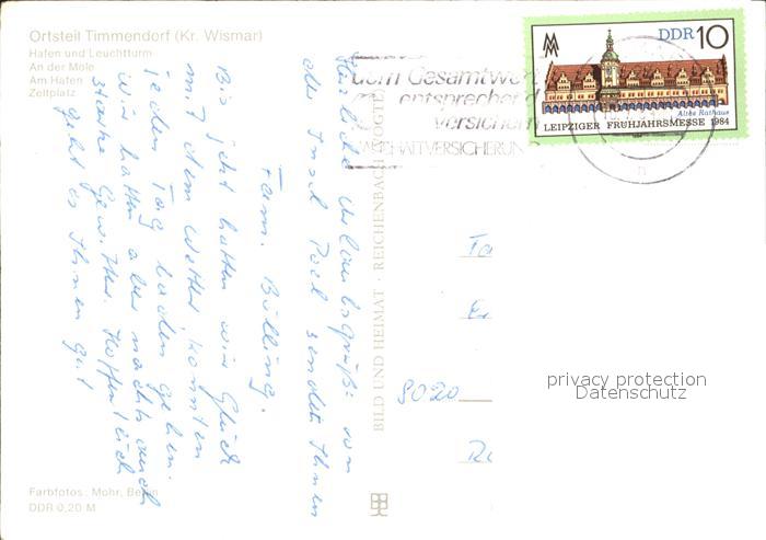 72372691 alte Postkarte Timmendorf Insel Poel Hafen Leuchtturm An der Mole Zeltplatz postalisch gelaufen Erhaltung siehe scans KatCode: 11110013058050