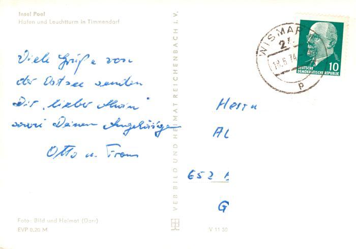 73888200 alte Postkarte Timmendorf Insel Poel Hafen und Leuchtturm postalisch gelaufen Erhaltung siehe scans [FriedD77] KatCode: 11110013058050