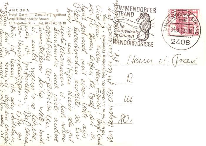 73885892 alte Postkarte Timmendorf Timmendorfer Strand Hotel garni Ancora Gastraum Gaestezimmer Hallenbad postalisch gelaufen Erhaltung siehe scans [WerneD78] KatCode: 11110001055042