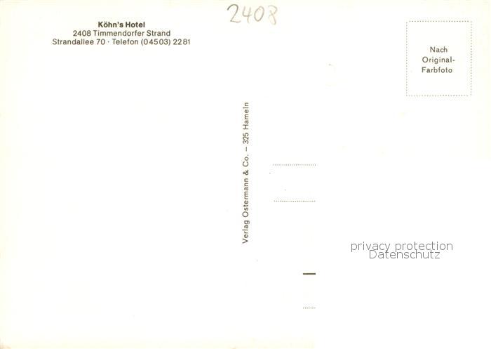 73864493 Timmendorf Timmendorfer Strand Koehns Hotel postalisch nicht gelaufen Erhaltung siehe scans [WerneD78] KatCode: 11110001055042
