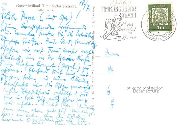 73320942 alte Postkarte Timmendorfer Strand Fliegeraufnahme postalisch gelaufen Erhaltung siehe scans [WerneD78] KatCode: 11110001055042