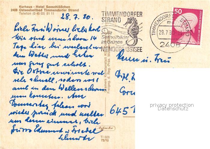 73031404 alte Postkarte Timmendorfer Strand Fliegeraufnahme Kurhaus Hotel Seeschloesschen postalisch gelaufen Erhaltung siehe scans [KathaD81] KatCode: 11110001055042