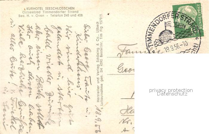 73360721 alte Postkarte Timmendorfer Strand Fliegeraufnahme Kurhotel Seeschloesschen postalisch gelaufen Erhaltung siehe scans [KathaD81] KatCode: 11110001055042
