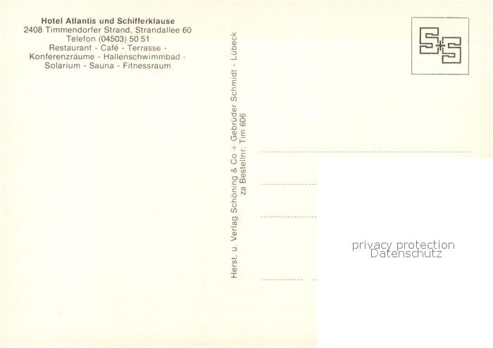 73312870 Timmendorfer Strand Hotel Atlantis Schifferklause postalisch nicht gelaufen Erhaltung siehe scans [KathaD81] KatCode: 11110001055042