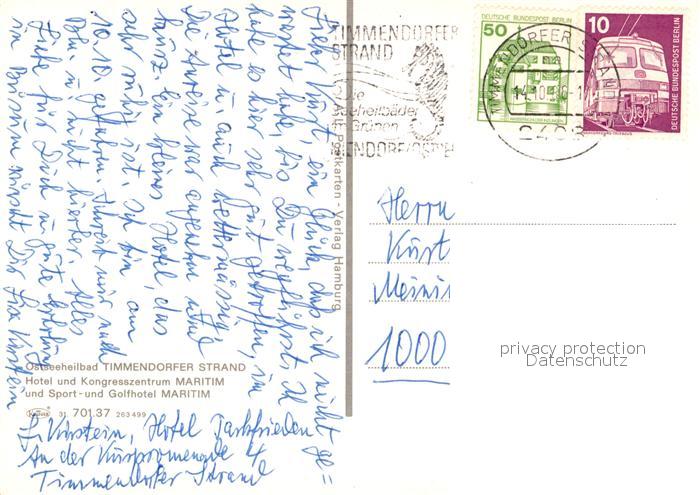 73210878 alte Postkarte Timmendorfer Strand Hotel Kongresszentrum Maritim postalisch gelaufen Erhaltung siehe scans [NatalD47] KatCode: 11110001055042