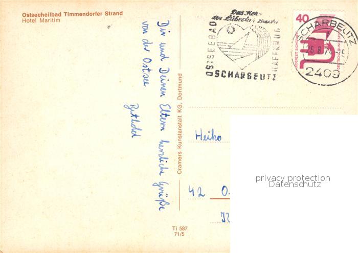 73106563 alte Postkarte Timmendorfer Strand Hotel Maritim postalisch gelaufen Erhaltung siehe scans [KathaD81] KatCode: 11110001055042