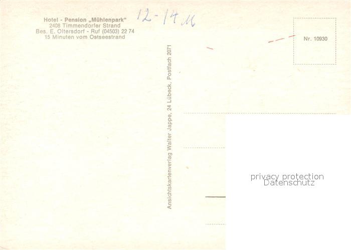 73249261 Timmendorfer Strand Hotel Pension Muehlenpark postalisch nicht gelaufen Erhaltung siehe scans [FriedD77] KatCode: 11110001055042