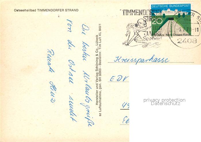 73174120 alte Postkarte Timmendorfer Strand Hotel Seebruecke Ostseeheilbad Fliegeraufnahme postalisch gelaufen Erhaltung siehe scans [FriedD77] KatCode: 11110001055042
