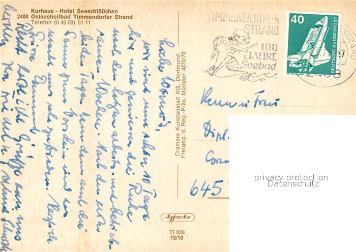 73031386 alte Postkarte Timmendorfer Strand Hotel Seeschloesschen postalisch gelaufen Erhaltung siehe scans [KathaD81] KatCode: 11110001055042