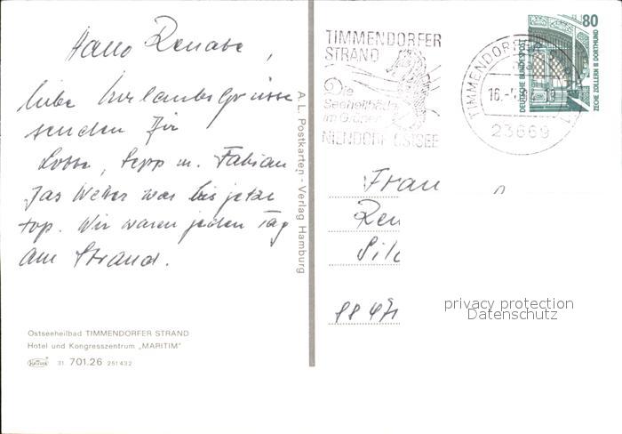72591405 alte Postkarte Timmendorfer Strand Hotel und Kongresszentrum Maritim Strand postalisch gelaufen Erhaltung siehe scans [WerneD78] KatCode: 11110001055042