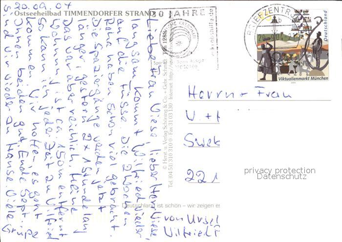 72528437 alte Postkarte Timmendorfer Strand Hotels Stranduhr Promenade Strassencafe Faehre Fliegeraufnahme postalisch gelaufen Erhaltung siehe scans KatCode: 11110001055042