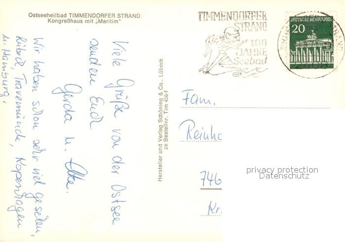 73106473 alte Postkarte Timmendorfer Strand Kongresshaus mit Maritim postalisch gelaufen Erhaltung siehe scans [KathaD81] KatCode: 11110001055042
