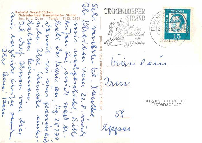 72716549 alte Postkarte Timmendorfer Strand Kurhotel Seeschloesschen postalisch gelaufen Erhaltung siehe scans [LiesaD40] KatCode: 11110001055042