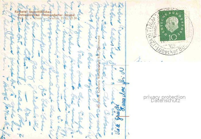 72845169 alte Postkarte Timmendorfer Strand Kurhotel Seeschloesschen postalisch gelaufen Erhaltung siehe scans [PaolaD17] KatCode: 11110001055042