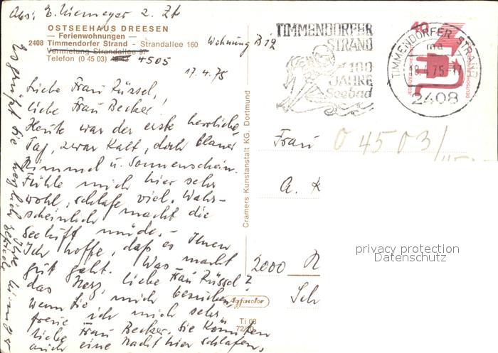 72523129 alte Postkarte Timmendorfer Strand Ostseehaus Dreesen postalisch gelaufen Erhaltung siehe scans KatCode: 11110001055042