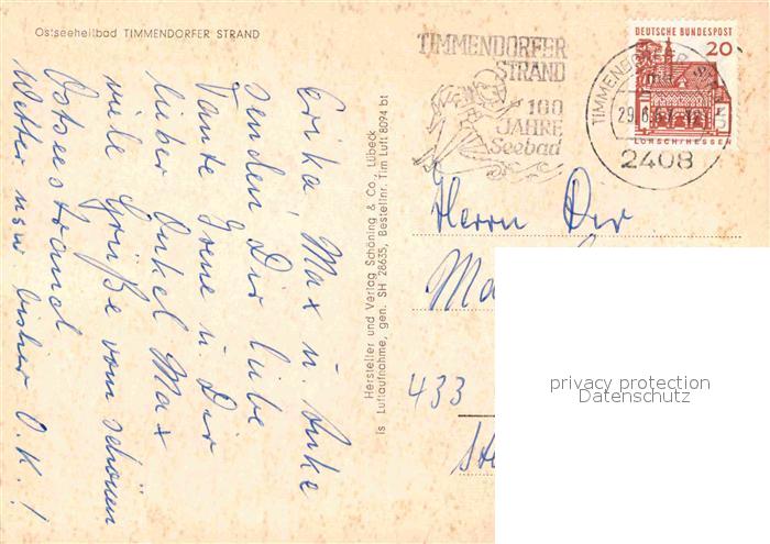 72847750 alte Postkarte Timmendorfer Strand Ostseeheilbad Fliegeraufnahme postalisch gelaufen Erhaltung siehe scans [FriedD77] KatCode: 11110001055042