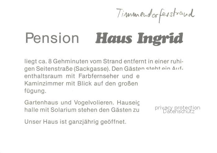 73542882 Timmendorfer Strand Pension Haus Ingrid postalisch nicht gelaufen Werbekarte (keine Postkarte) Erhaltung siehe scans [FriedD77] KatCode: 11110001055042