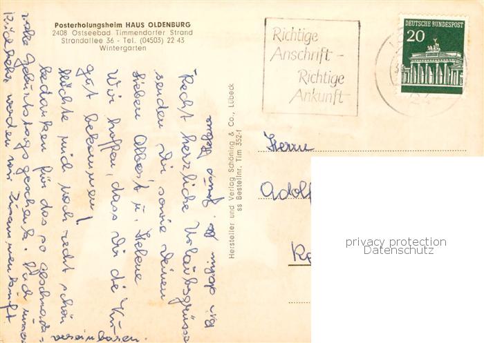 73791387 alte Postkarte Timmendorfer Strand Posterholungsheim Haus Oldenburg Wintergarten postalisch gelaufen Erhaltung siehe scans [WerneD78] KatCode: 11110001055042