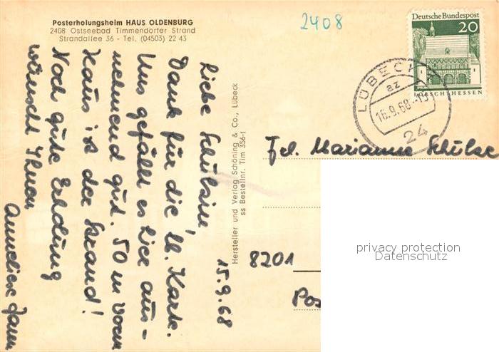 73124435 alte Postkarte Timmendorfer Strand Posterholungsheim Haus Oldenburg postalisch gelaufen Erhaltung siehe scans [KathaD81] KatCode: 11110001055042