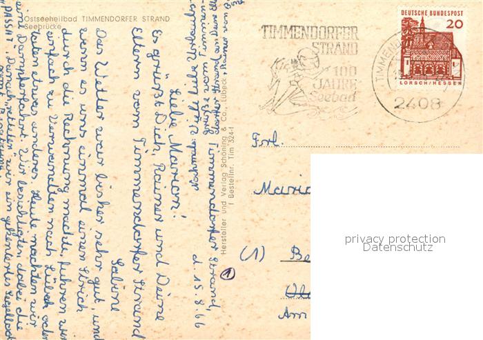 73227096 alte Postkarte Timmendorfer Strand Seebruecke Ostseeheilbad postalisch gelaufen Erhaltung siehe scans [FriedD77] KatCode: 11110001055042