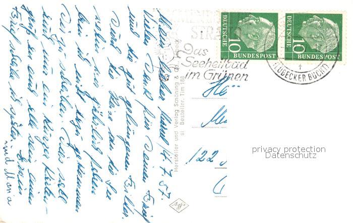73101320 alte Postkarte Timmendorfer Strand Strand Fliegeraufnahme Anlegerbruecke postalisch gelaufen Erhaltung siehe scans [KathaD81] KatCode: 11110001055042