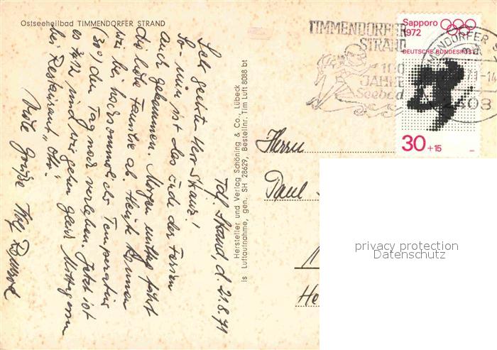 72617790 alte Postkarte Timmendorfer Strand Strand Seebruecke Hotelanlage Fliegeraufnahme postalisch gelaufen Erhaltung siehe scans [FriedD77] KatCode: 11110001055042