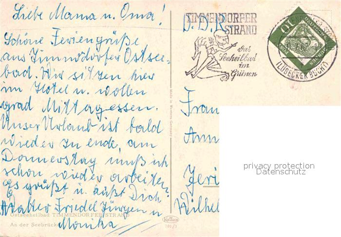 72700578 alte Postkarte Timmendorfer Strand Strandpartie an der Seebruecke postalisch gelaufen Erhaltung siehe scans [WerneD78] KatCode: 11110001055042