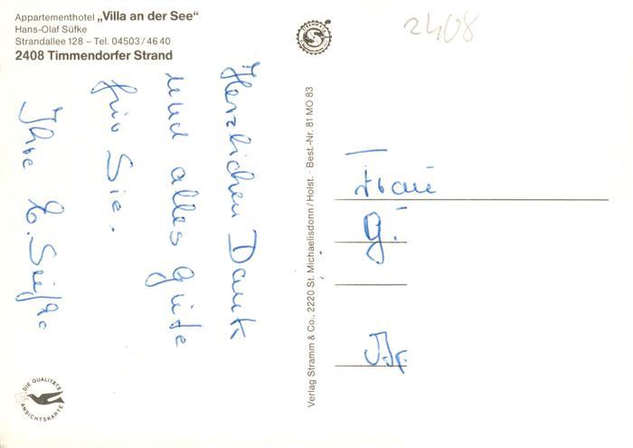 73940448 Timmendorfer Strand Timmendorferstrand Timmendorf Appartementhotel Villa an der See postalisch nicht gelaufen Erhaltung siehe scans [FriedD77] Frie Katcode 11110001055042