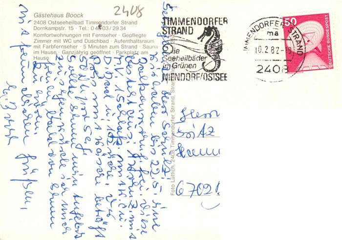 73940375 Timmendorfer Strand Timmendorferstrand Timmendorf Gaestehaus Boock Gaststube Zimmer postalisch gelaufen Erhaltung siehe scans [FriedD77] alte Postkarte Frie Katcode 11110001055042