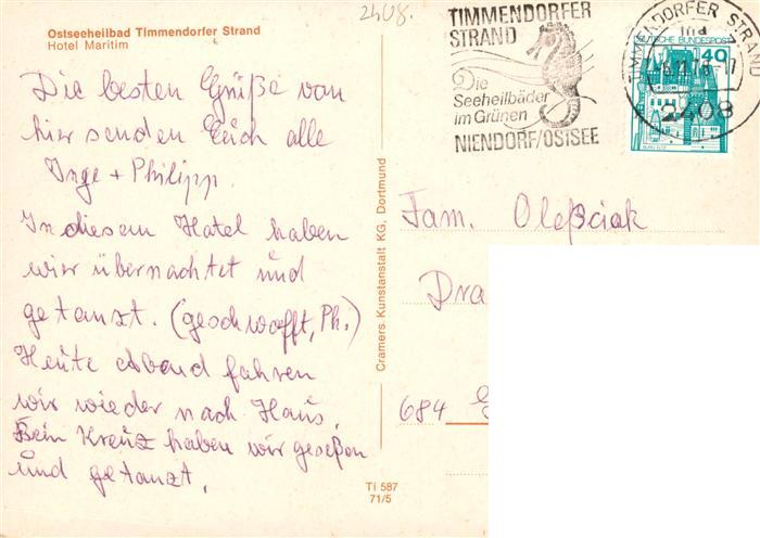 73940361 Timmendorfer Strand Timmendorferstrand Timmendorf Hotel Maritim postalisch gelaufen Erhaltung siehe scans [FriedD77] alte Postkarte Frie Katcode 11110001055042