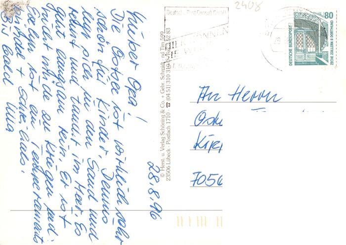 73940369 Timmendorfer Strand Timmendorferstrand Timmendorf Strandpartien Fliegeraufnahmen Kurpark Promenade Stuermische See Waldkirche postalisch gelaufen Erhaltung siehe scans [FriedD77] alte Postkarte Frie Katcode 11110001055042