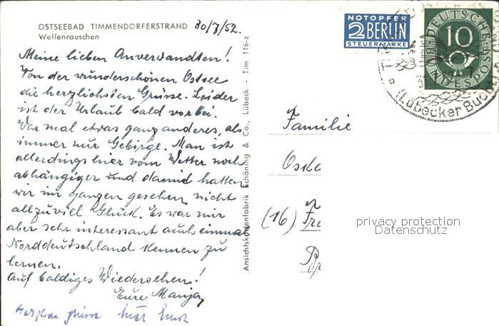 72199165 alte Postkarte Timmendorfer Strand Wellenrauschen postalisch gelaufen Erhaltung siehe scans KatCode: 11110001055042