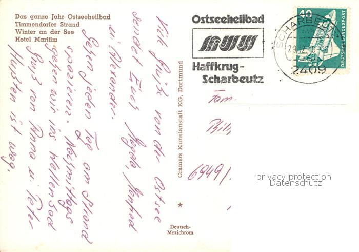73011147 alte Postkarte Timmendorfer Strand Winter an der See Hotel Maritim postalisch gelaufen Erhaltung siehe scans [WerneD78] KatCode: 11110001055042