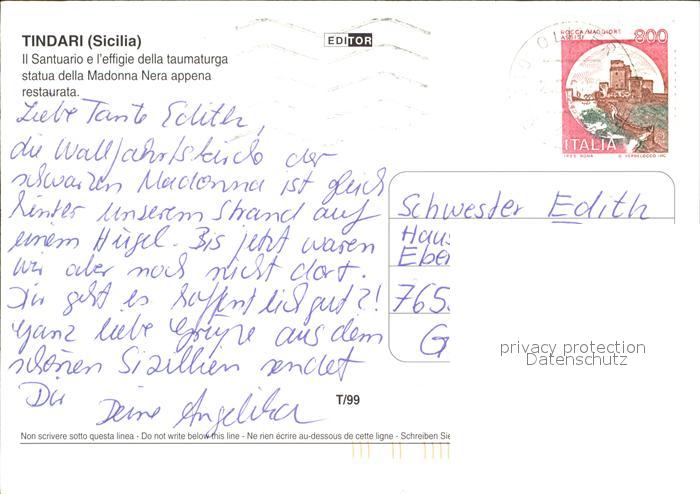 old postcard Tindari Il Santuario e l’effigie della taumaturga statua della Madonna Nera postalisch gelaufen Erhaltung siehe scans