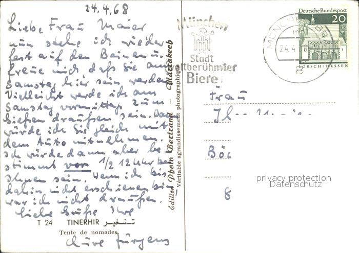 alte Postkarte Tinerhir Tente de nomades postalisch gelaufen Erhaltung siehe scans