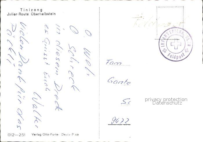 11655821 alte Postkarte Tinizong Julier Route Oberhalbstein postalisch gelaufen Feldpost Erhaltung siehe scans KatCode: 11470100305978